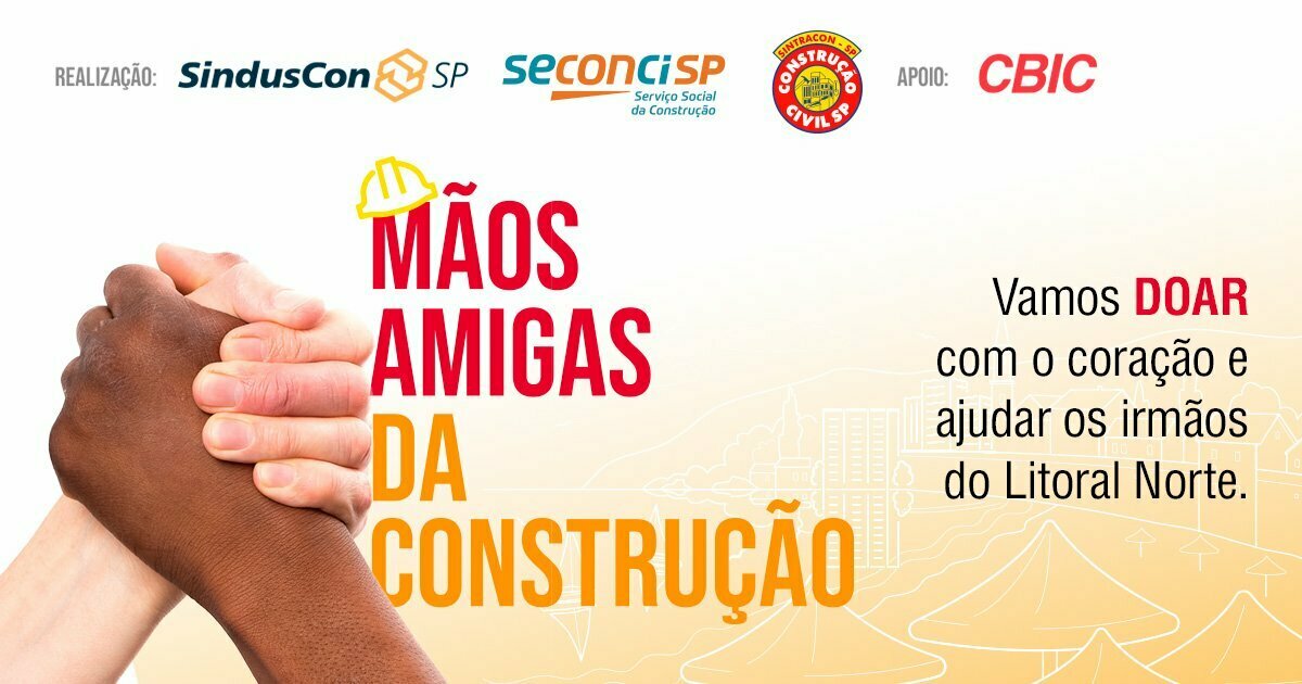 Com a urgência de demonstrar a responsabilidade social do nosso setor, Seconci-SP, SindusCon-SP e Sintracon-SP, com apoio da CBIC, dão início à Campanha Mãos Amigas da Construção, para arrecadar doações para as famílias atingidas pela tragédia que se abateu sobre o Litoral Norte.